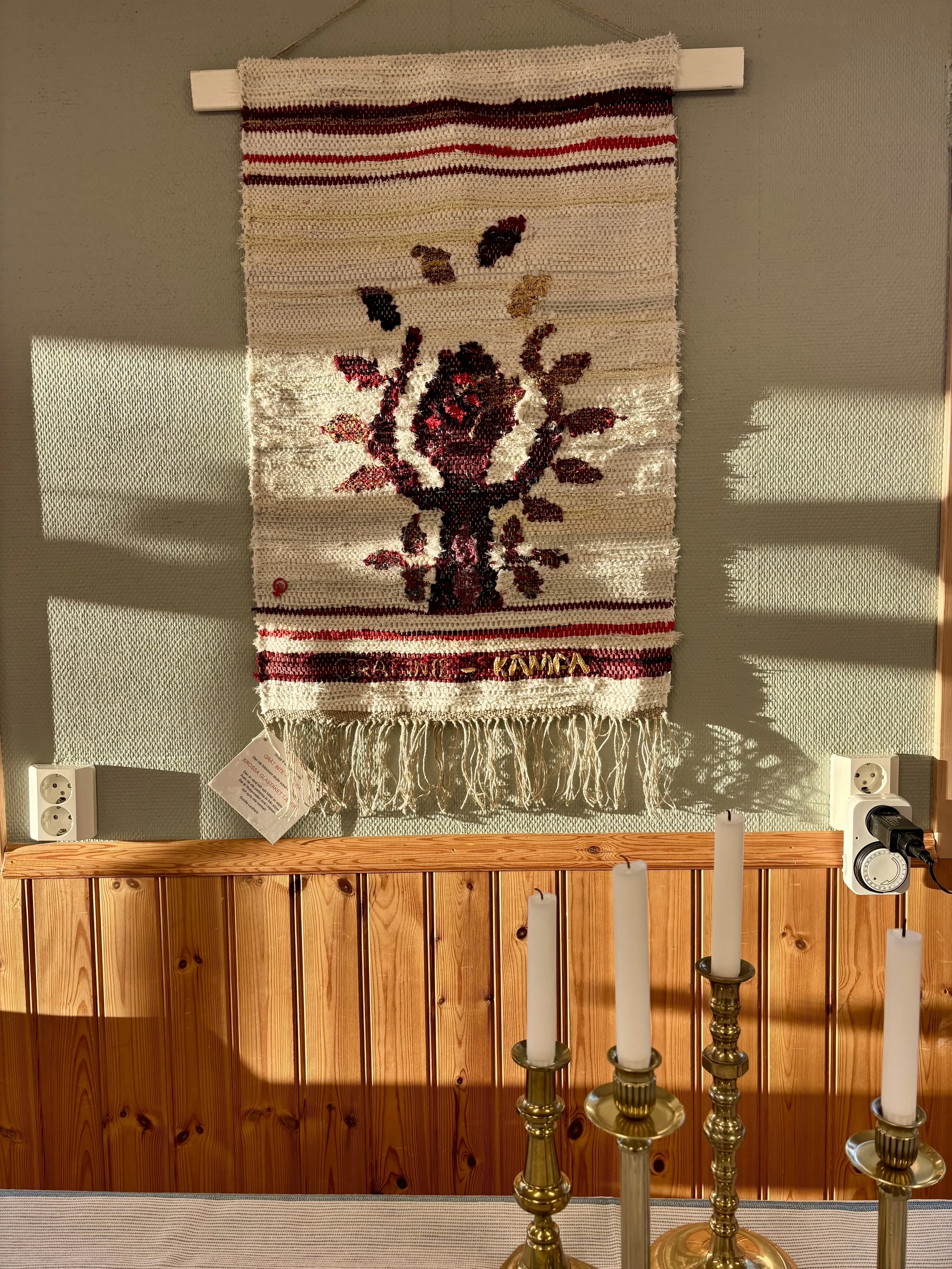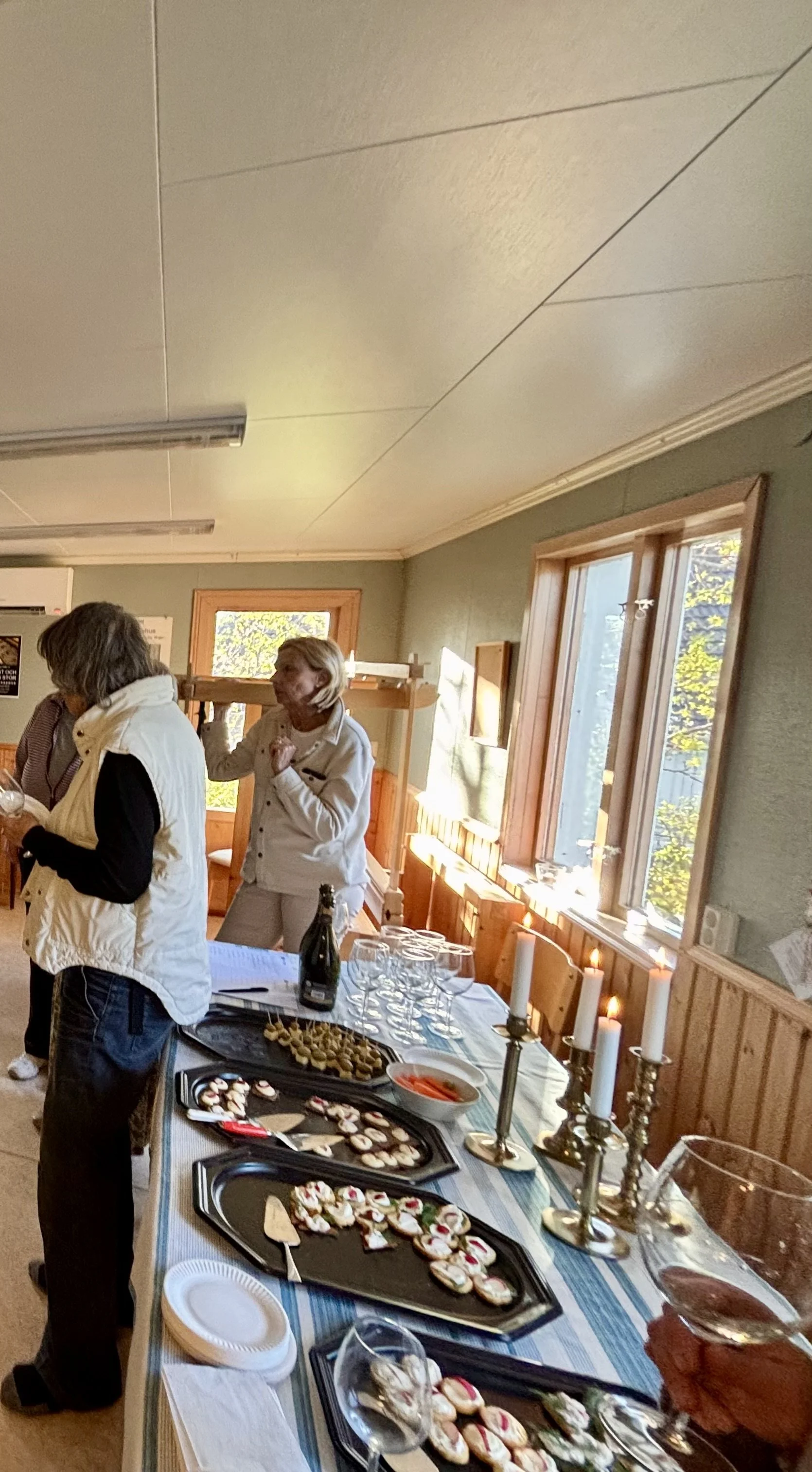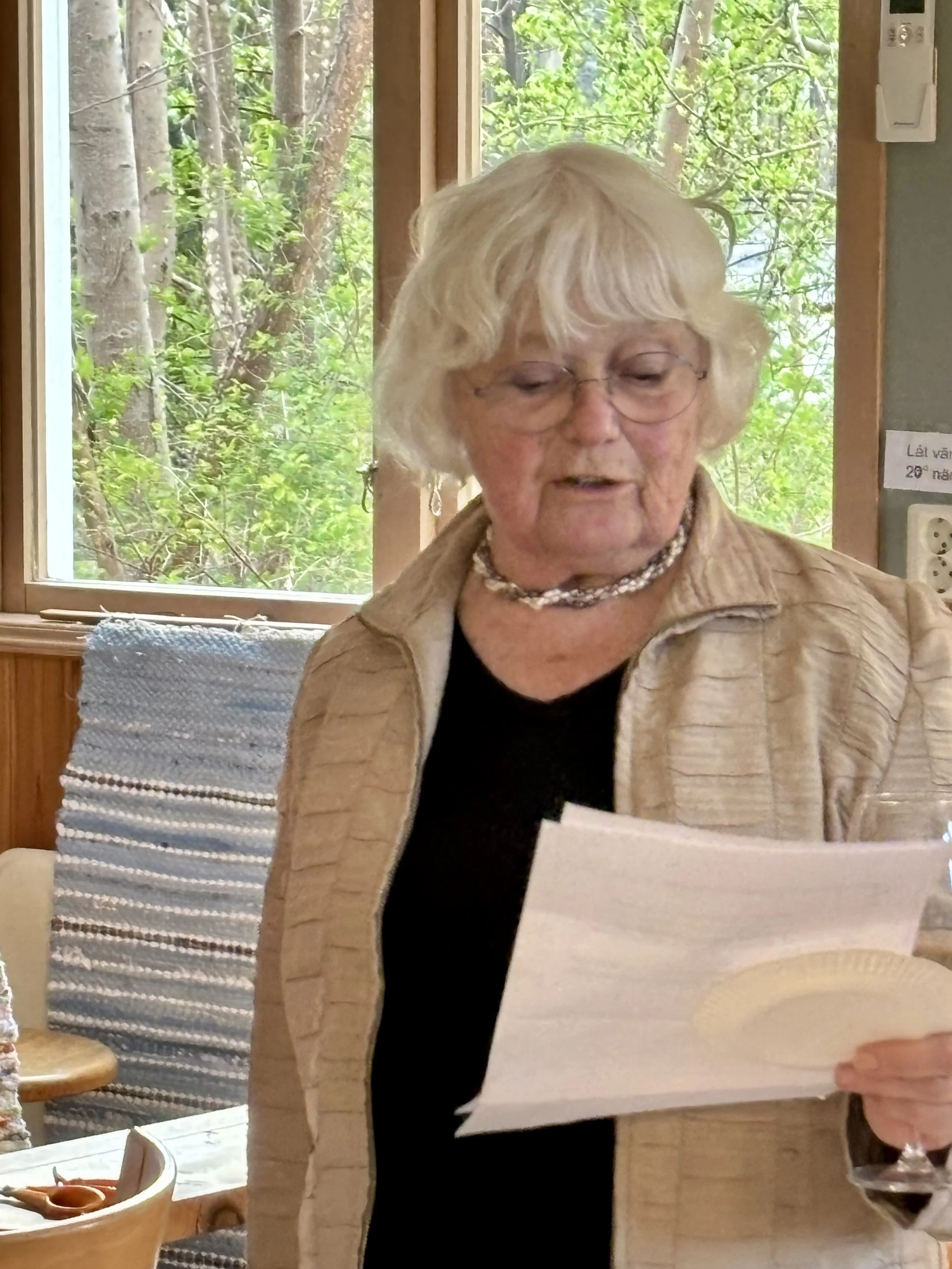 Vävstugans återinvigning 29 april 2025 blev otroligt trevlig med stor uppslutning bl.a. av tre lokalpolitiker plus Jors Damberg som var med och byggde vävstugan på 80-talet och som på senare år även bidragit med vår fina skylt. Vi var runt 25 personer som klämde in oss bland vävstolarna och beundrade de fantastiska alstren och njöt av god samvaro och gott tilltugg. Nu är vävstugan tilläggsisolerad, har sänkt innertak och är nymålad inne och ute. Vävstolarna är tillbakaflyttade och vävstugan kan användas igen, året runt, med denna energibesparande makeover.